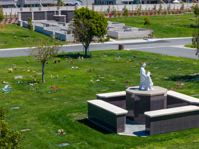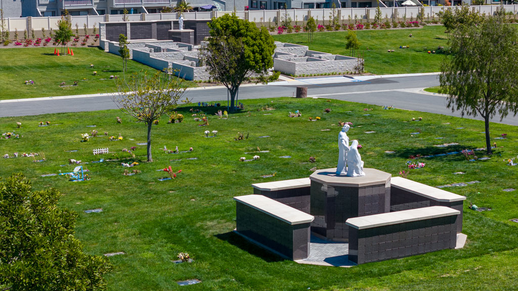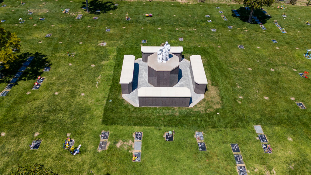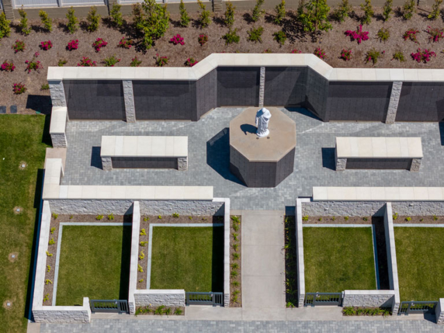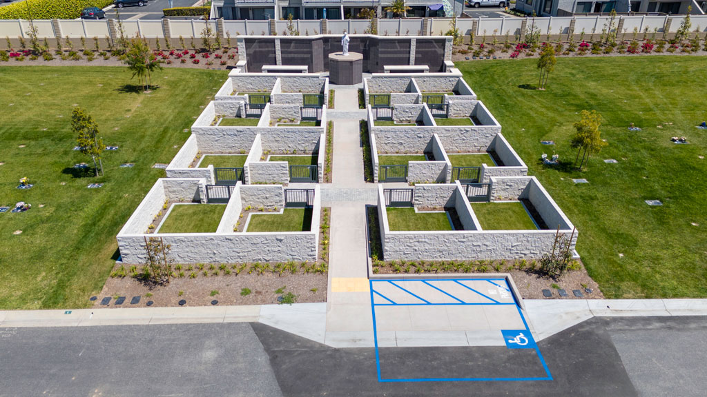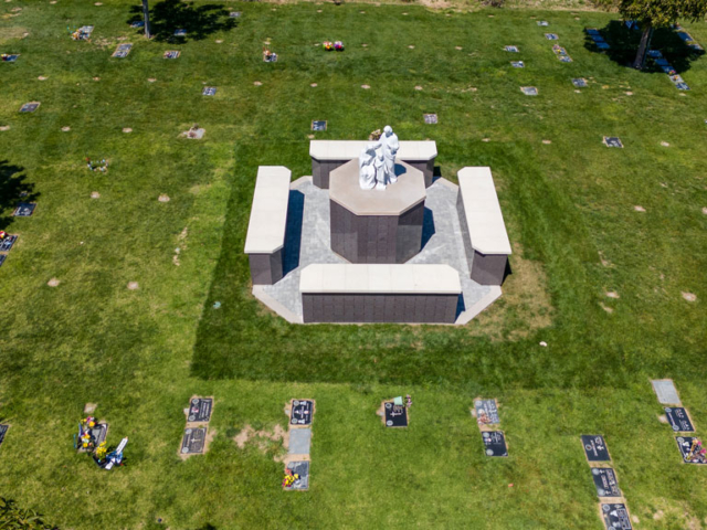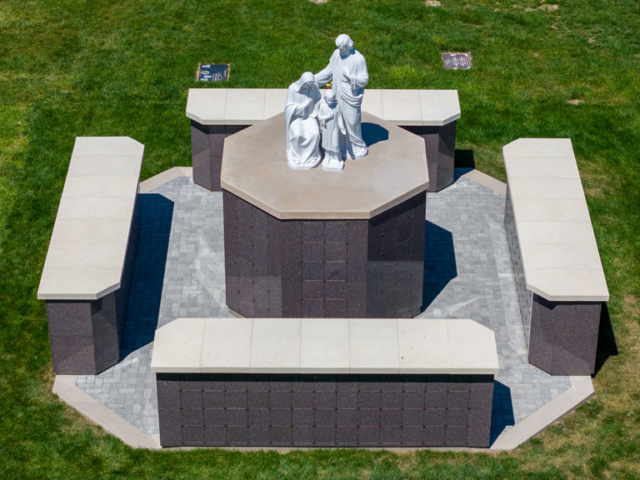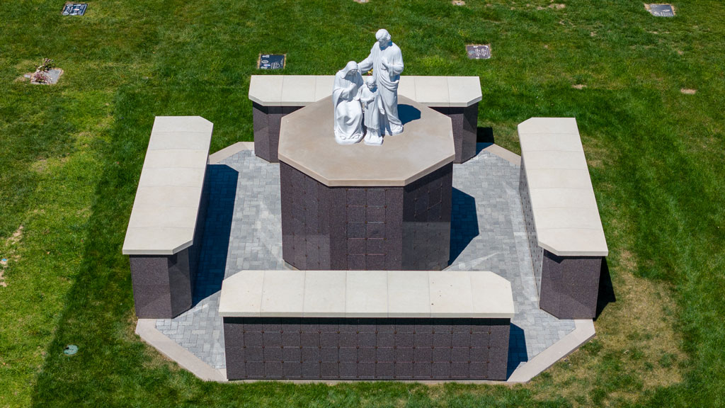 - Added new pedestal with niches for urn and cremated internment. Pedestal and niches are granite with Valori pre-cast caps.