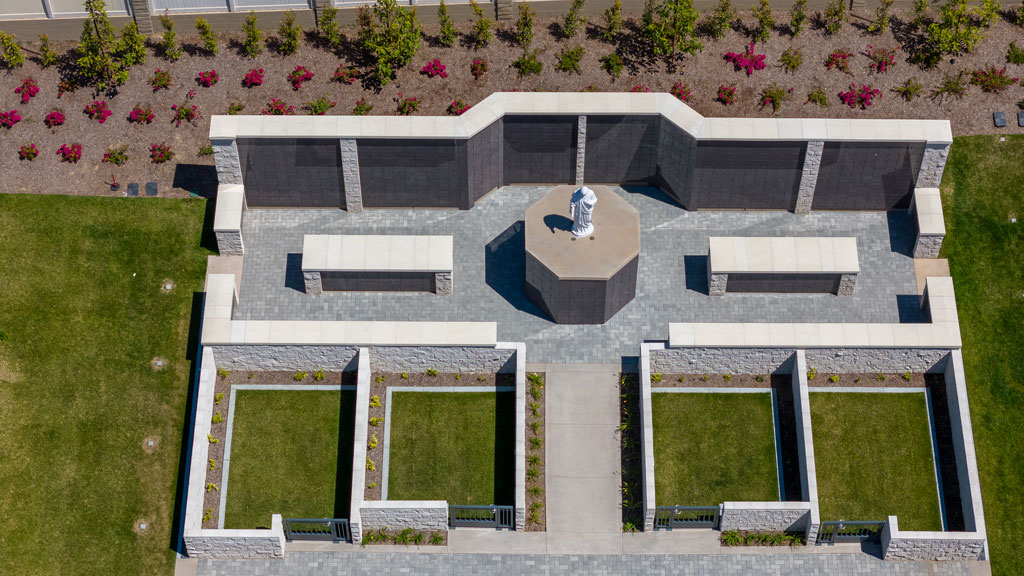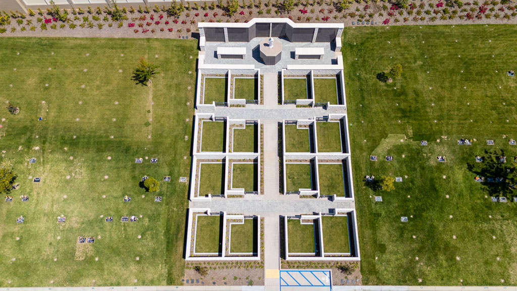 - Added new pedestal and site wall with niches for urn and cremated internment with Valori pre-cast caps.