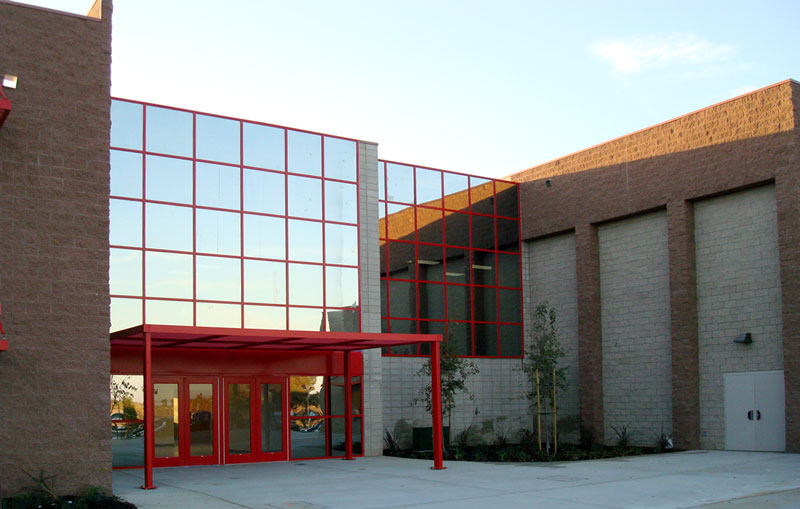 The two-story, 17 classroom building also included a teachers’ workroom, restrooms, full gymnasium and full kitchen, as well as a design/build glass and glazing system, fire sprinkler and fire alarm systems and canopies.