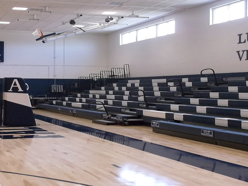 The gymnasium renovation included complete removal and replacement of the court’s maple floor, new basketball and volleyball equipment acoustical ceiling, lighting, HVAC re-configuration and paint throughout.