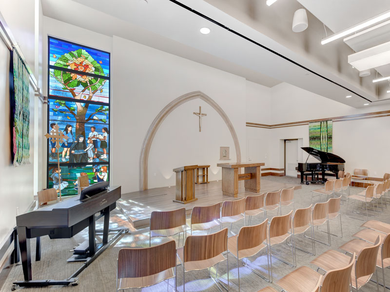 Project consisted of demolishing an existing 900 SF chapel and replacing it with a new 1,669 SF chapel that is attached to an existing gymnasium building.