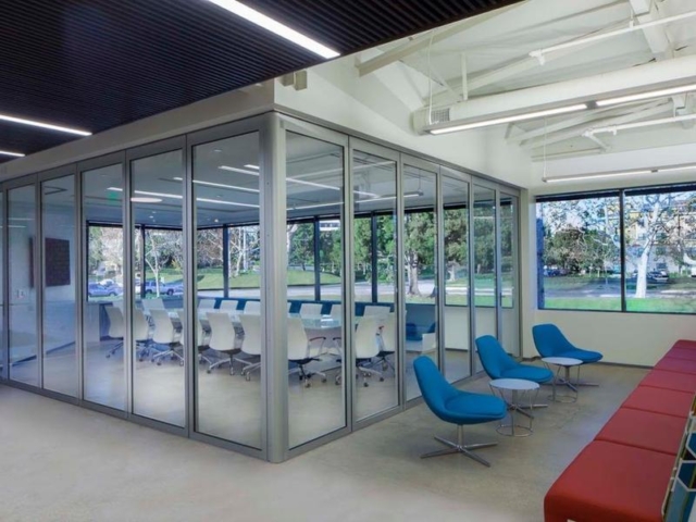 Project also included installation of two separate sliding glass door systems, fabrication of a custom koi pond, installation of a new roof, relocation of an operating server room and ADA upgrades to the front entrance of the building.