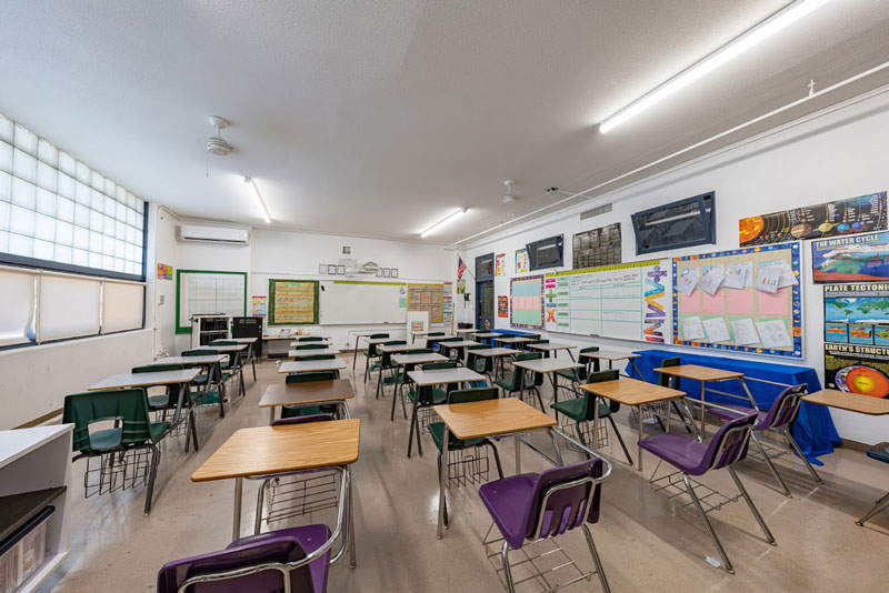 The roof featured mounted condenser units along with a new split system in each classroom.