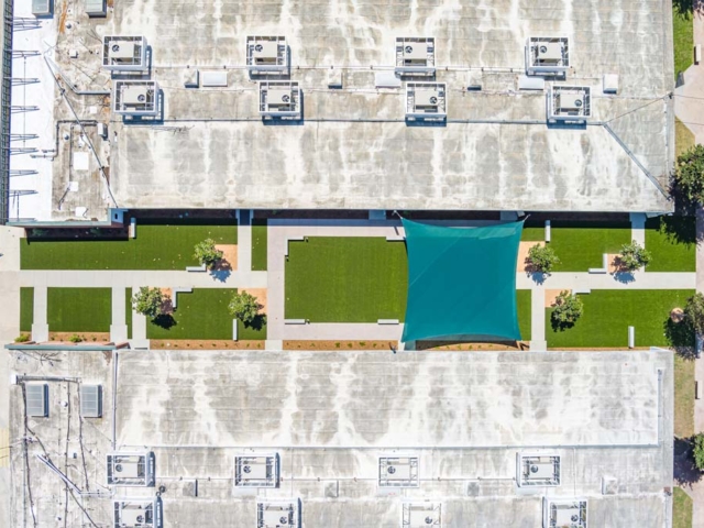The courtyard, signage screen, and structural upgrades were all completed in a Design Build role with Nous Engineering and Landcare Inc.