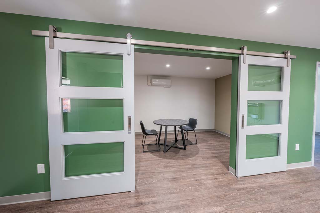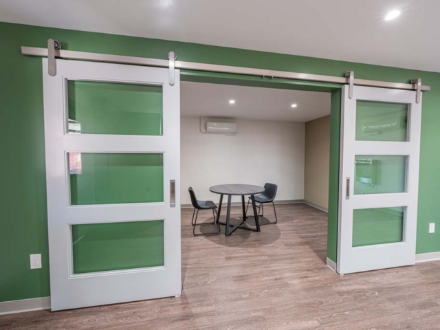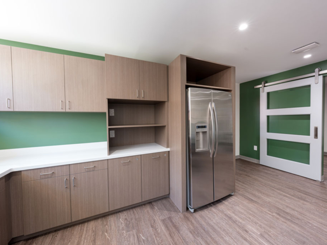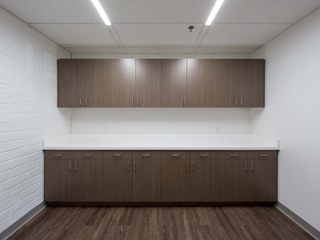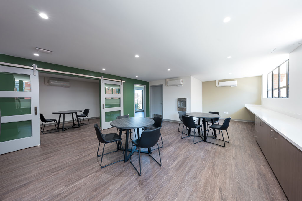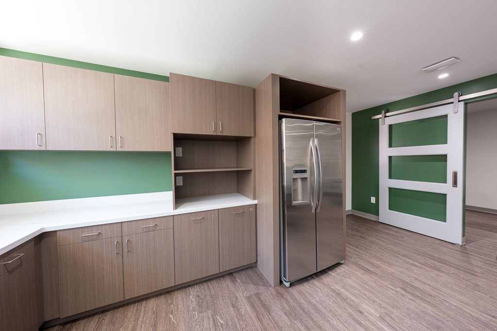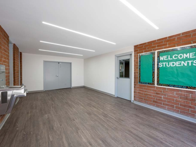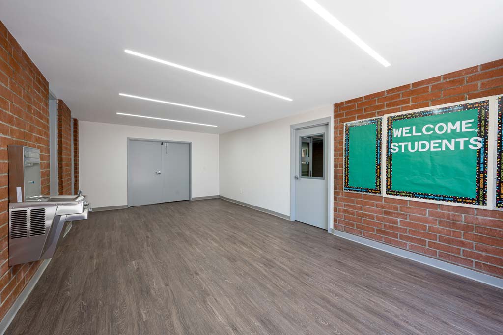 An open concept was designed for the front office, back office, and break room areas. To achieve the open concept, both buildings received structural upgrades: Shoring, new posts and beams, and underpinning of footings. The interiors were renovated with new lighting, HVAC, millwork, tiled restrooms, painted walls and ceilings, and doors. Additionally, every classroom received an upgraded lighting package.