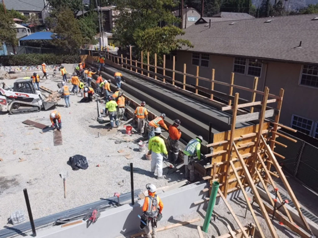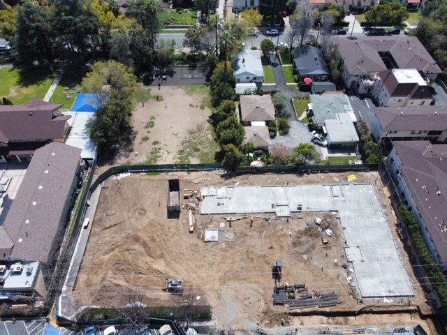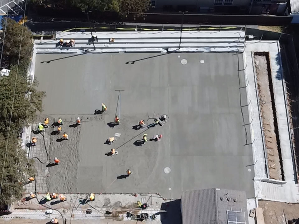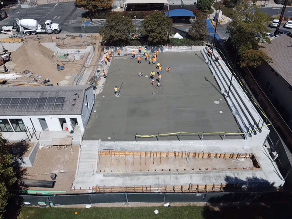 Subsequently, we built a new 4,800 square foot preschool, enhanced by a 7,100 square foot play area. A new basketball court was also created, along with a ramp linking the upper campus to the lower campus. Additionally, we constructed a staircase from the upper campus to the preschool yard, and another staircase and ramp leading from the basketball/preschool area to the lower playfield. To improve accessibility, we established new van-accessible parking spaces.
