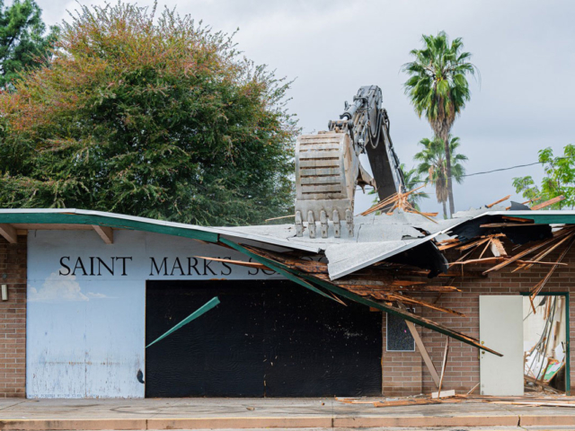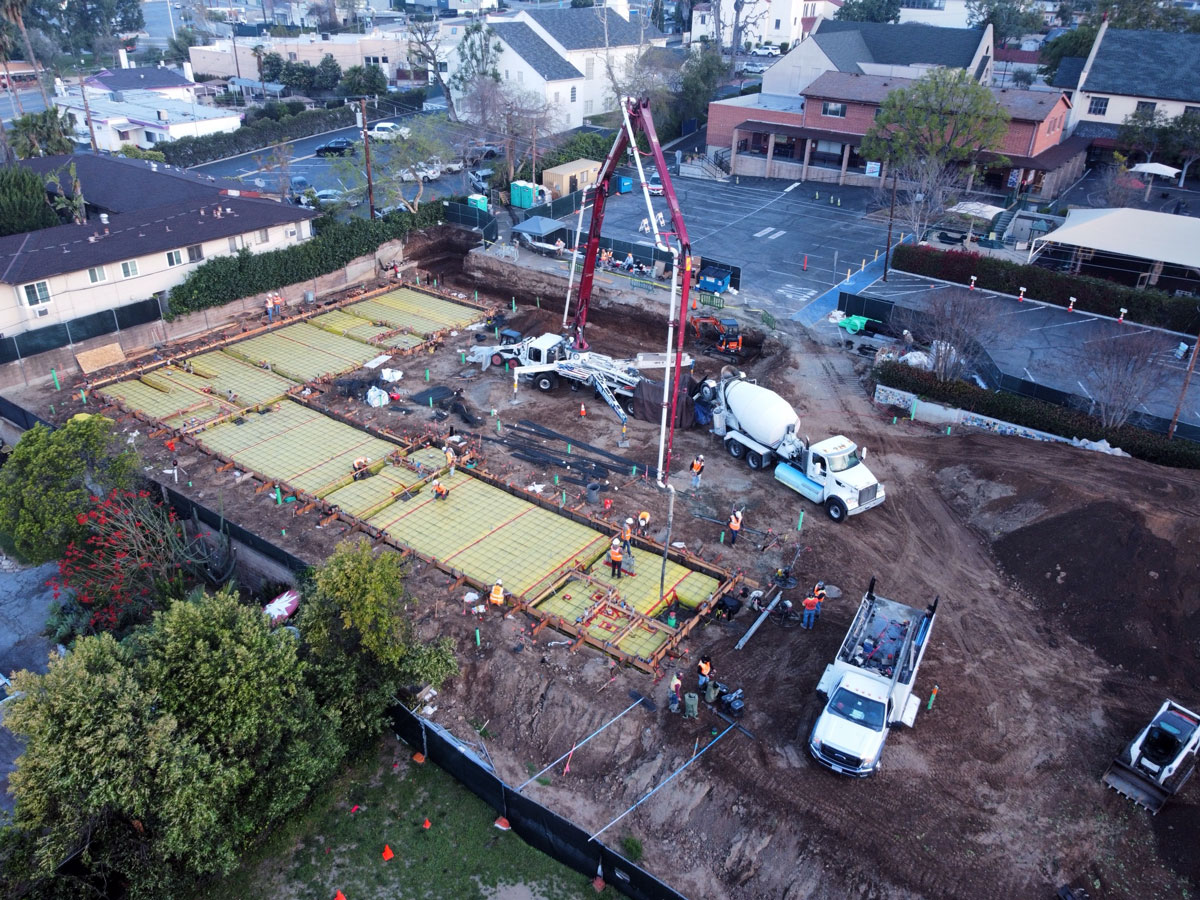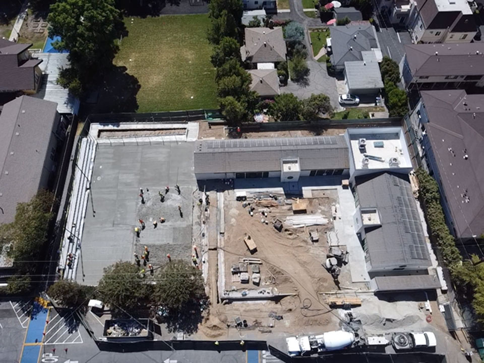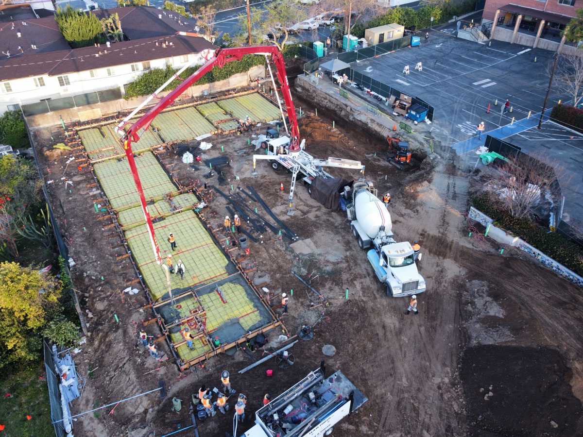 St. Mark’s Preschool project involved constructing a brand-new facility featuring four classrooms designed to accommodate up to 64 children, all arranged in an L-shaped layout that integrates an outdoor play courtyard. The initial phase required the demolition of an 1,800 square foot Before-Care/After-Care building, along with the existing basketball court and the staircase connecting the upper and lower campuses.
