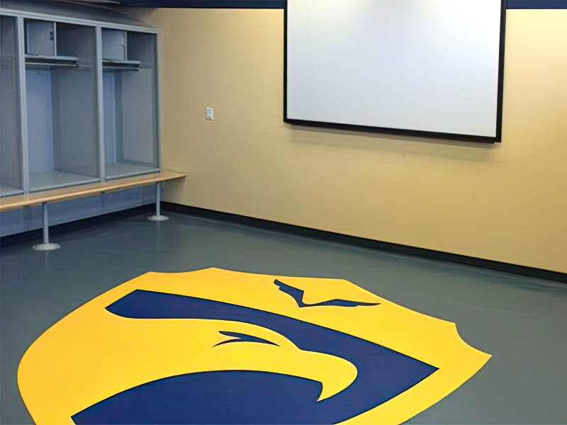 Project consisted of design build of MPE, including demolition of existing facility floors and walls, patch and repair of drywall, installation of new rubber sports flooring with school logo in the weight room, new epoxy flooring in the locker room, new VCT in the kitchen with cabinets and appliances, new paint and electrical fixtures throughout.