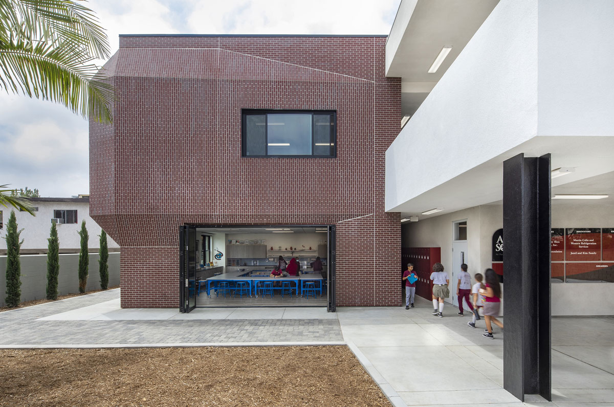 The client is a K-8 school that is a dual language, immersive environment where kids are taught Chinese and Spanish along with English. The student body and faculty are ethnically diverse with lessons including instructors from outside the US. They needed new classroom space to accommodate a quickly growing student population that has increased from 50 to almost 250 in about 5 years. Prior to the building students were in portable classrooms that were no longer functional.