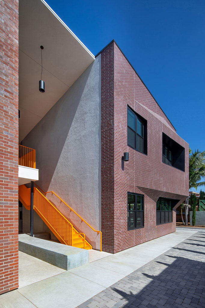 Additionally, the building anchors the campus even though it’s on a sliver of the site away from the main play areas. Instead of setting itself apart from the rest of campus it is now visible as a beacon.