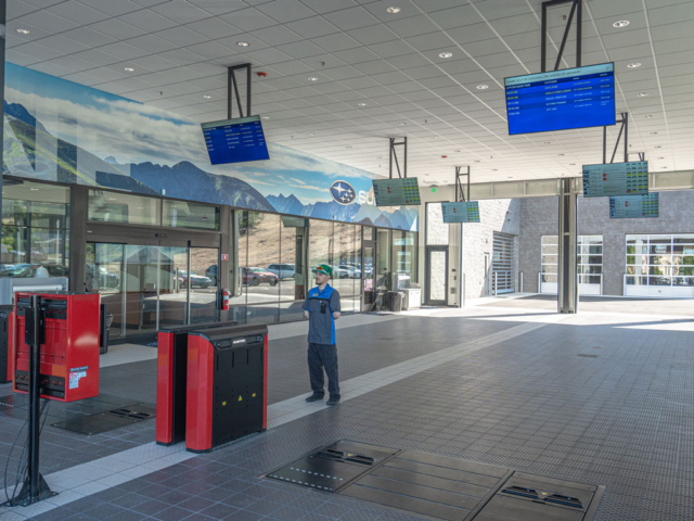 The dealership includes 20,000 square feet of tile, a curtain wall system, mechoshades, a wall panelized system, key machines and custom millwork. The showroom is adorned with a pergola structure and custom-built national monument structures, such as El Capitan and iconic Yosemite trees, inspiring customers to pursue adventure.